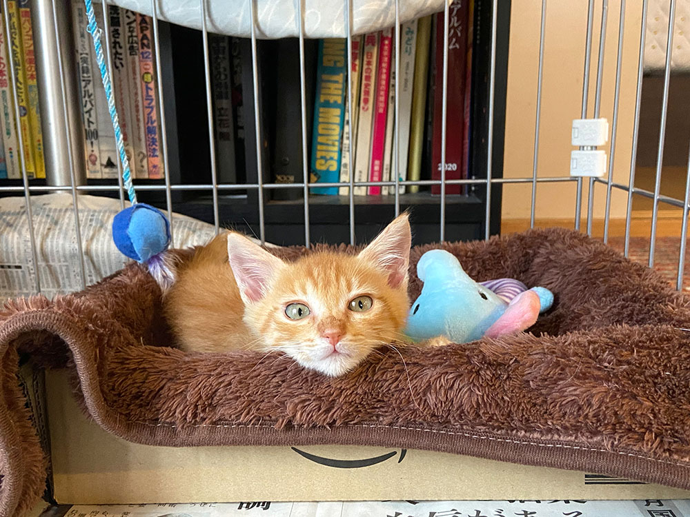 友達というのはカミさんの大学時代の友人Kで、地元近所に仔猫などの里親探しをしているネットワークがあり、Kさんはその代表の友人。良くある友達の友達の友達情報みたいな感じ。茶トラを希望していたカミさんにとってはラッキーだった。