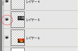 どの写真がどのレイヤーなのかが分からなくなったら、左図赤丸の目玉アイコンをクリックするとそのレイヤー画像が消える。