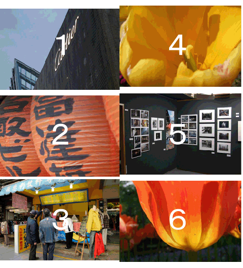 「移動ツール」を選択した後、画像レイヤーの1〜6を選択し、カーソル「→」を押してセンターに移動。↓