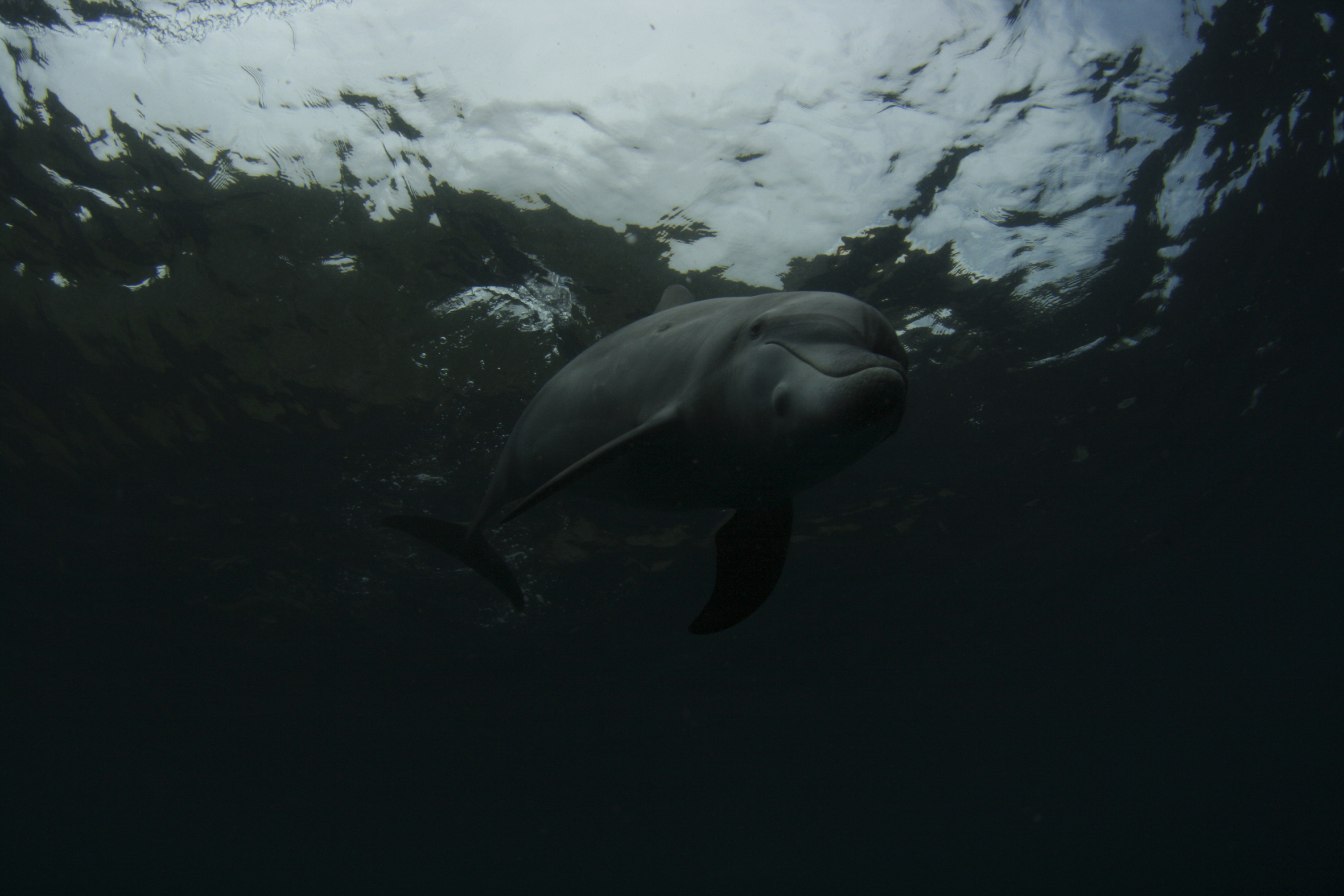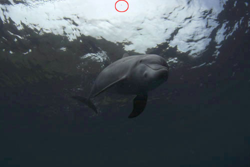 最後は「明るさ・コントラスト」で全体の濃度を決めます・・が、全体的に冷たい青系が主に白い箇所に目立つので私の好みとして、先にレンズフィルター「フィルタ暖色系(LBA)」10 で調整。ちょっとイルカの体に微妙に赤が浮いてしまったので上の白が緑っぽくならないぐらいカラーバランスでグリーン +2。