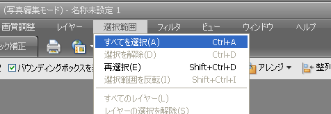 作成したら、メニュー:選択範囲 → すべてを選択(A)