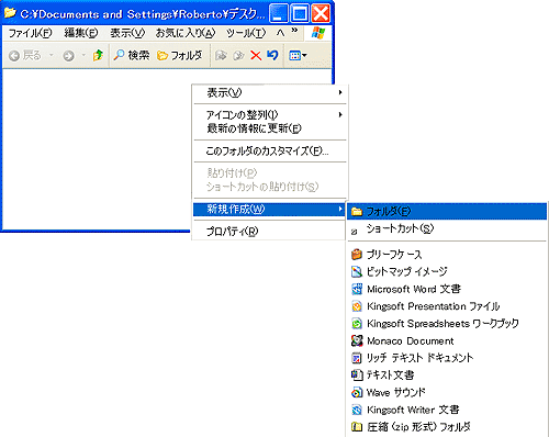 新しいフォルダを作成したい箇所にマウスのカーソルを持ってゆき(例えば左写真の赤丸箇所等)、右クリック。